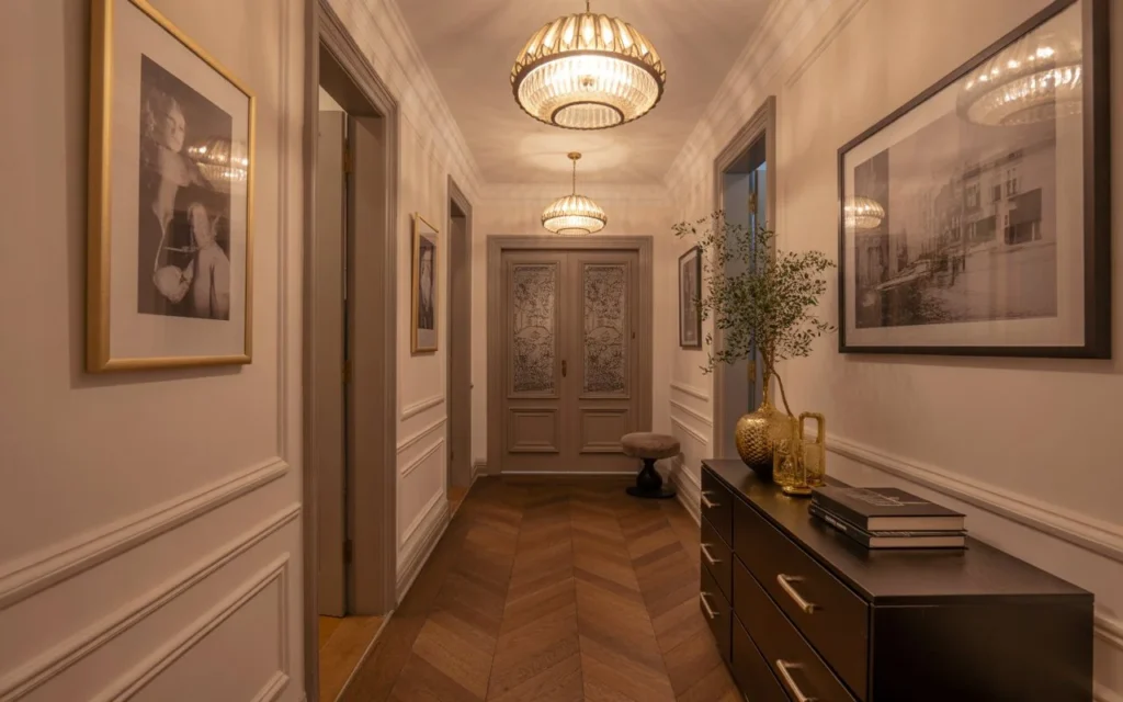 It’s a great choice if your hallway feels plain or lacks personality. Even in smaller spaces, this pattern adds a luxurious, high-end vibe that feels intentional and stylish.