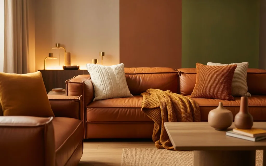 Opt for small touches like leather cushions, ottomans, or straps. This keeps the look balanced while adding a subtle luxurious feel.