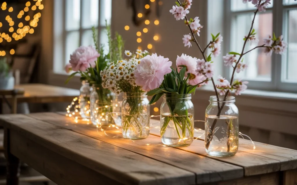 If you’re decorating on a budget, this is one of the best DIY farmhouse spring decor ideas you can try. Fill them with flowers, fairy lights, or greenery for a simple yet charming look.