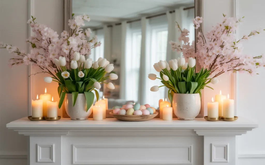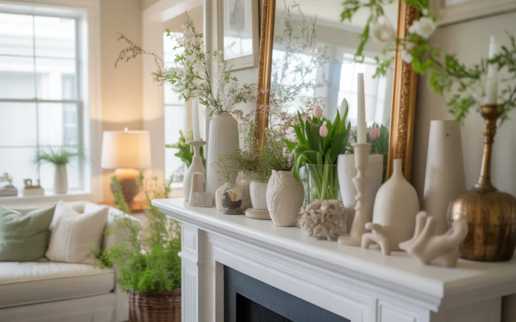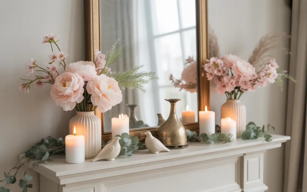 This approach works especially well for beginners and those searching for easy mantel styling ideas for spring that always look put together.