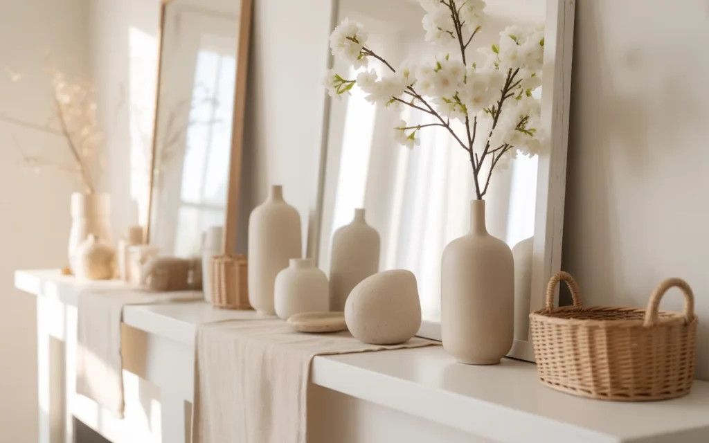 8. Minimalist Mantel with Neutral Tones