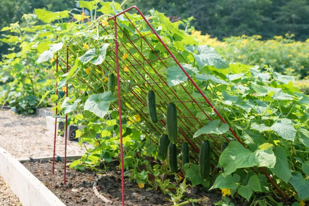 For small gardens, growing cucumbers on a vertical trellis is a great solution. This method saves space and helps keep the fruits clean and healthy.